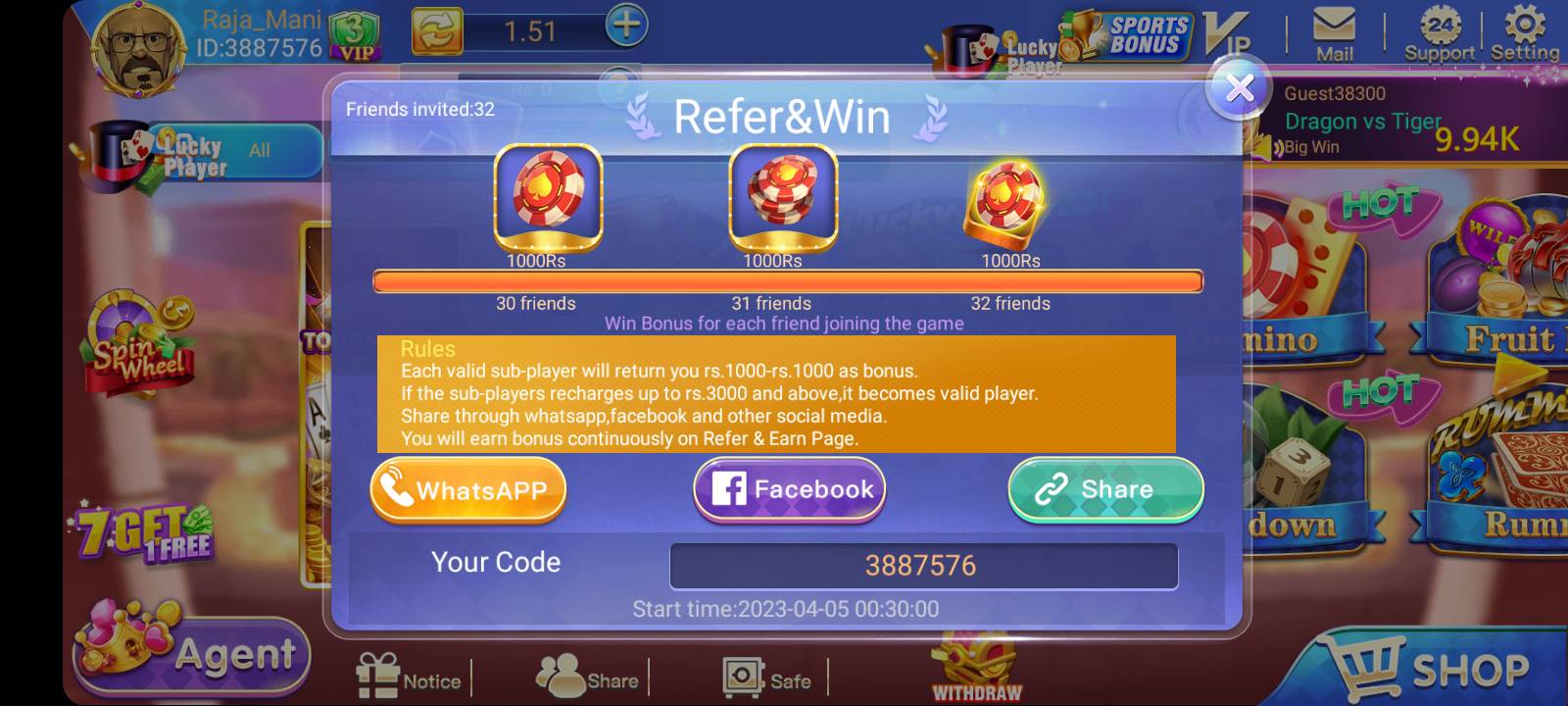 Unlike normal gaming apps that only offer virtual chips, this app lets you deposit money, play games, win earnings, and withdraw real money. The app gives players the comfort of playing anytime, with the added benefit of real cash winnings that transfer straight to your mobile wallet.